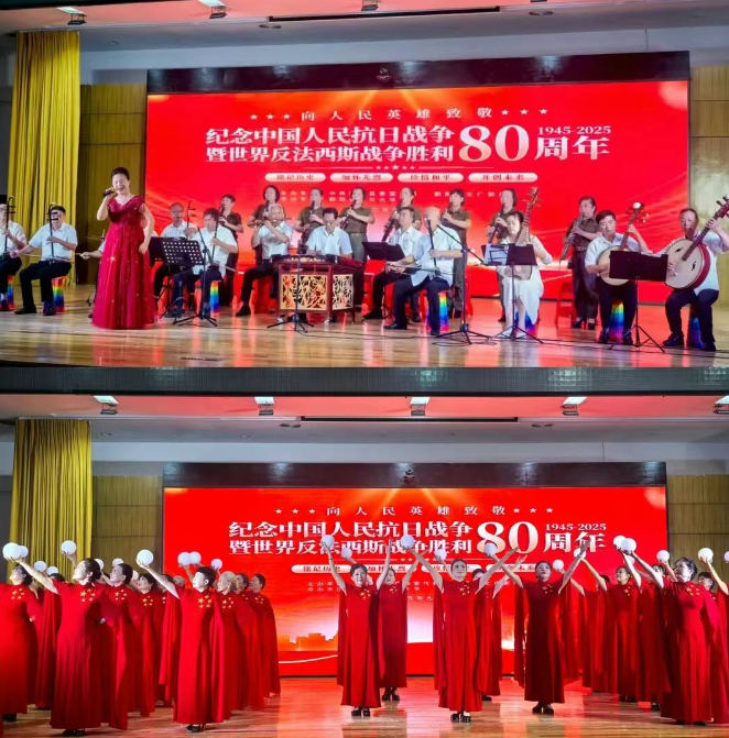 9月14日,縣委會議中心內燈光璀璨,座無虛席。鄱陽縣各界人士與群眾代表齊聚一堂,共同觀看由縣老年大學學員呈現(xiàn)的“紀念中國人民抗日戰(zhàn)爭暨世界反法西斯戰(zhàn)爭勝利80周年”文藝匯演?;顒又荚谕ㄟ^文藝形式傳承抗戰(zhàn)精神,弘揚愛國主義情懷。