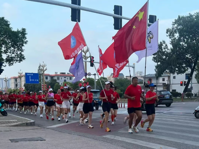 當天早上,100余名奔跑隊員從鄱陽湖公園,途經東湖大道、建設路、芝陽,最后返回鄱陽湖公園,全程10.1公里。用跑步向祖國送上活力祝福。