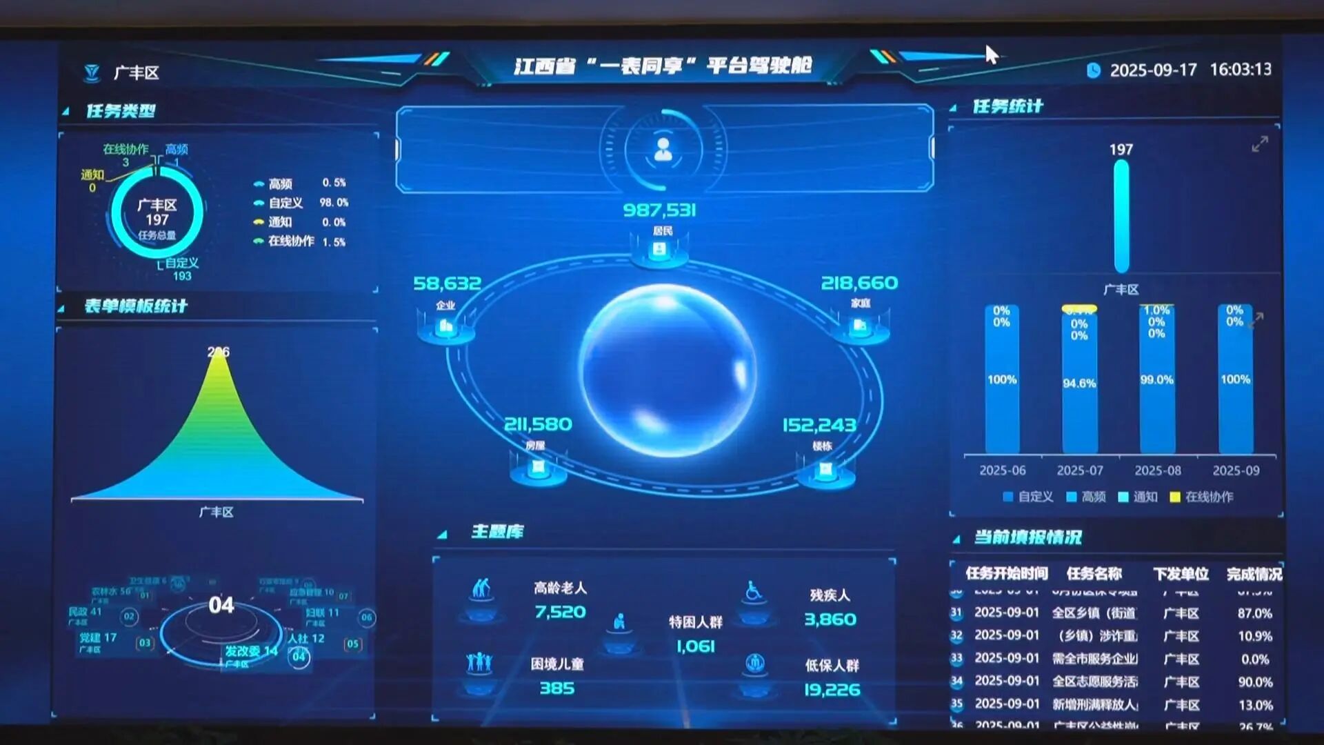 經(jīng)全面梳理658張基層報表,并多輪整合精簡后,將207張表格錄入“一表同享”系統(tǒng),壓減率達(dá)68.5%。全區(qū)已歸集“人、房、企”等基礎(chǔ)數(shù)據(jù)162.8萬條,平臺下發(fā)任務(wù)174條,真正實現(xiàn)數(shù)據(jù)一次采集、多方共享、反復(fù)利用。