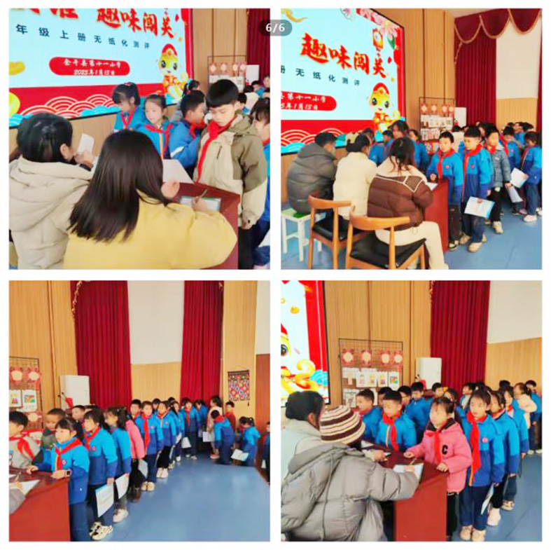 本次無紙化測試活動涵蓋了語文、數學、安全、文明禮儀、民族團結等多方面內容,采用了闖關挑戰(zhàn)賽的形式進行。學生們手持闖關卡,在各個指定關口等待挑戰(zhàn)。測試環(huán)節(jié)設計得既有趣又富有挑戰(zhàn)性。