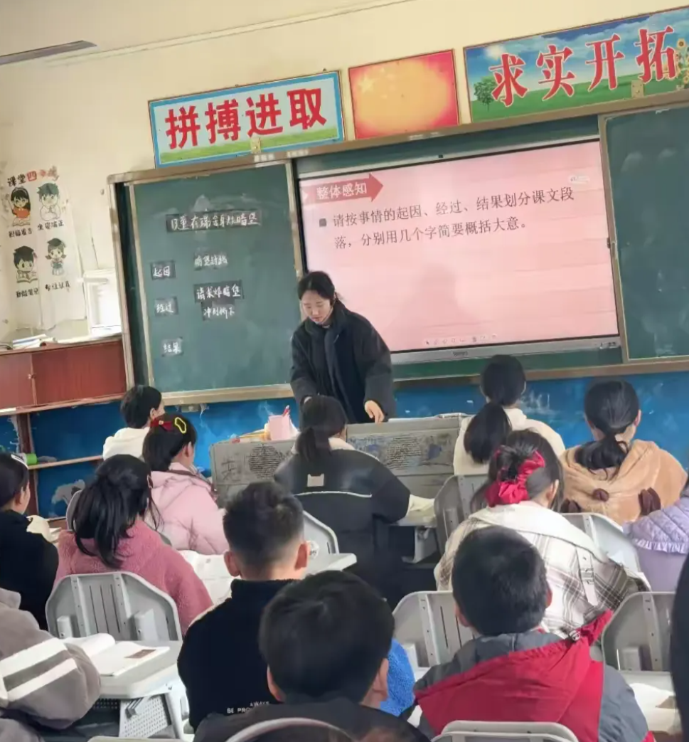 教室墻壁上,“拼搏進(jìn)取 求實(shí)創(chuàng)新”的標(biāo)語(yǔ)醒目而有力,時(shí)刻激勵(lì)著師生不斷突破自我。這堂課中,彭老師不僅專注于知識(shí)的傳授,更著重培養(yǎng)學(xué)生的價(jià)值觀與社會(huì)責(zé)任感。借由董存瑞的英勇事跡,孩子們深刻領(lǐng)悟到勇敢與奉獻(xiàn)的真諦。這種寓教于樂的教學(xué)模式,讓學(xué)習(xí)不再枯燥,而是生動(dòng)有趣、深入人心。老師不斷鼓勵(lì)學(xué)生積極思考、大膽表達(dá),在互動(dòng)交流中加深對(duì)課文的理解與感悟。