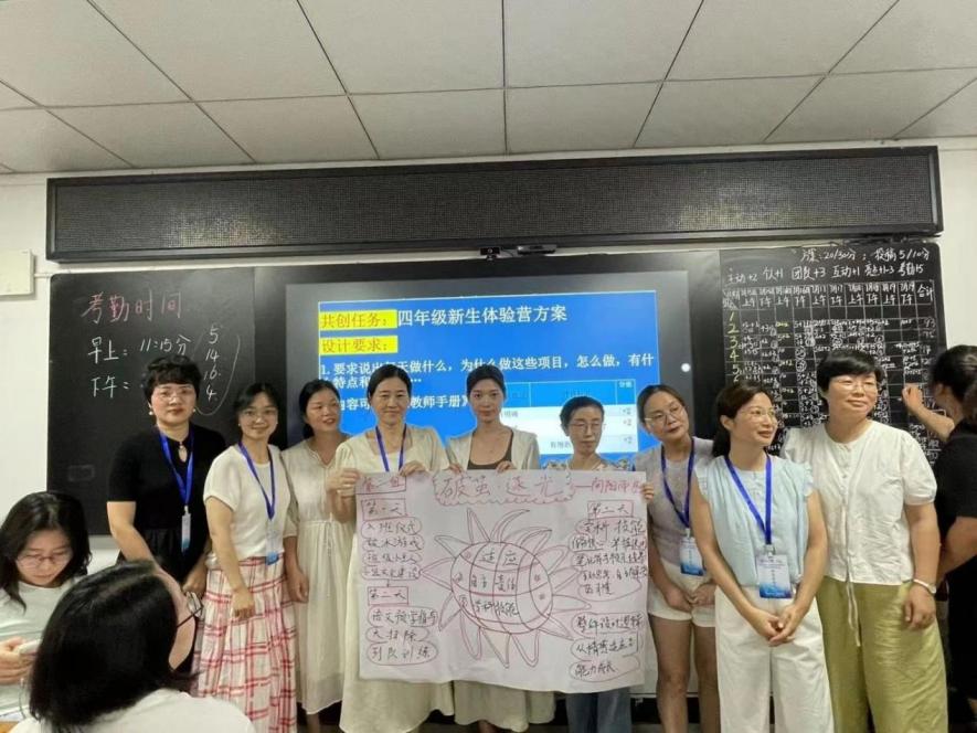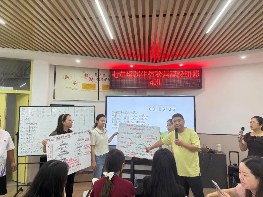 研學的最終目的是學以致用。學習尾聲,廣豐區(qū)研學團隊按校分組,結(jié)合幾天來的所學所思及各自學校的校情、學情展開頭腦風暴,群策群力,制定出具有校本特色的“新生體驗營”初步策劃方案,力求將學到的經(jīng)驗真正運用到實際教學中。