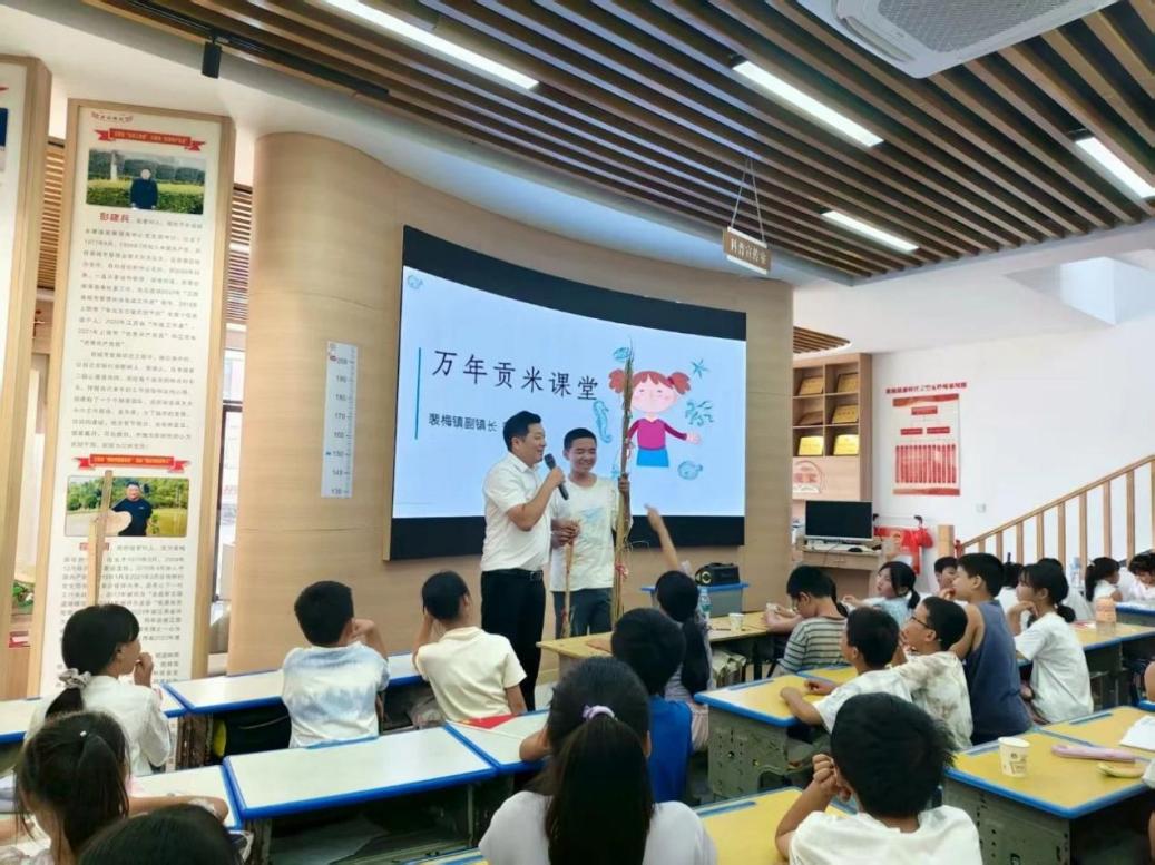 隨后,民俗專家曹建金帶來(lái)了“萬(wàn)年貢米課堂”,從歷史淵源、獨(dú)特品質(zhì)到產(chǎn)業(yè)振興,深入淺出地講述了萬(wàn)年貢米的文化價(jià)值。孩子們聽得津津有味,不僅增長(zhǎng)了知識(shí),更增強(qiáng)了對(duì)家鄉(xiāng)文化的認(rèn)同感。