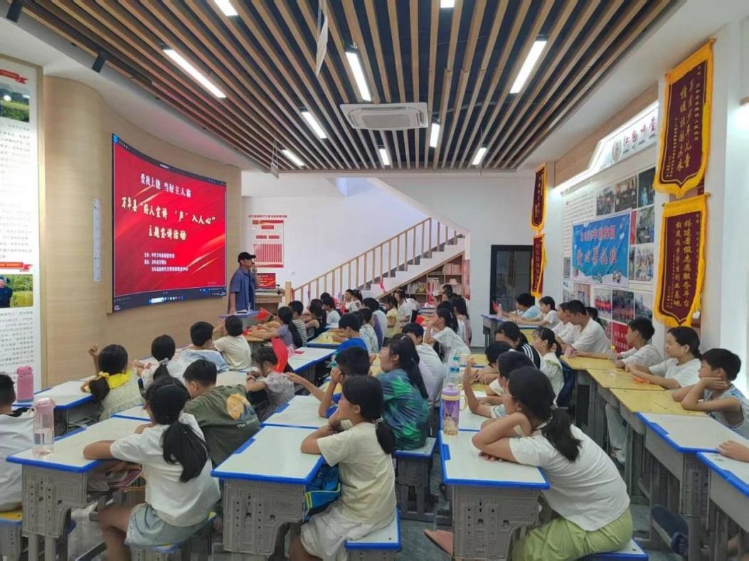 7月23日下午,由中共萬(wàn)年縣委宣傳部主辦,縣文明辦、縣新時(shí)代文明實(shí)踐促進(jìn)中心承辦的“愛我上饒·當(dāng)好主人翁·‘好人宣講‘聲’入人心’”主題宣講活動(dòng)在萬(wàn)年縣裴梅鎮(zhèn)新時(shí)代文明實(shí)踐所舉行,為這里“愛心暑托班”的孩子們帶來(lái)了一場(chǎng)別開生面的暑期課堂。