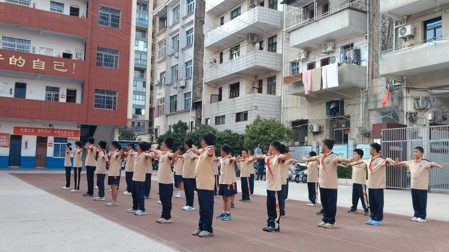 隨著活動(dòng)音樂響起,余干縣第三小學(xué)操場上瞬間化作活力海洋。跑操環(huán)節(jié),學(xué)子們步伐整齊、口號嘹亮,展現(xiàn)出昂揚(yáng)的精神風(fēng)貌;廣播體操時(shí)間,同學(xué)們昂首挺胸、動(dòng)作標(biāo)準(zhǔn),手臂伸展如青松挺拔,踢腿跳躍似雛鷹振翅;三字經(jīng)操與弟子規(guī)操環(huán)節(jié),傳統(tǒng)文化與體育律動(dòng)巧妙融合,孩子們在舒展的動(dòng)作中感悟經(jīng)典魅力;最后的放松操則讓身心在舒緩節(jié)奏中得到調(diào)節(jié)。整場活動(dòng)動(dòng)靜結(jié)合、張弛有度,整齊劃一的隊(duì)列宛如流動(dòng)的青春畫卷,充分彰顯出該校學(xué)子良好的身體素質(zhì)與嚴(yán)明的紀(jì)律意識。
