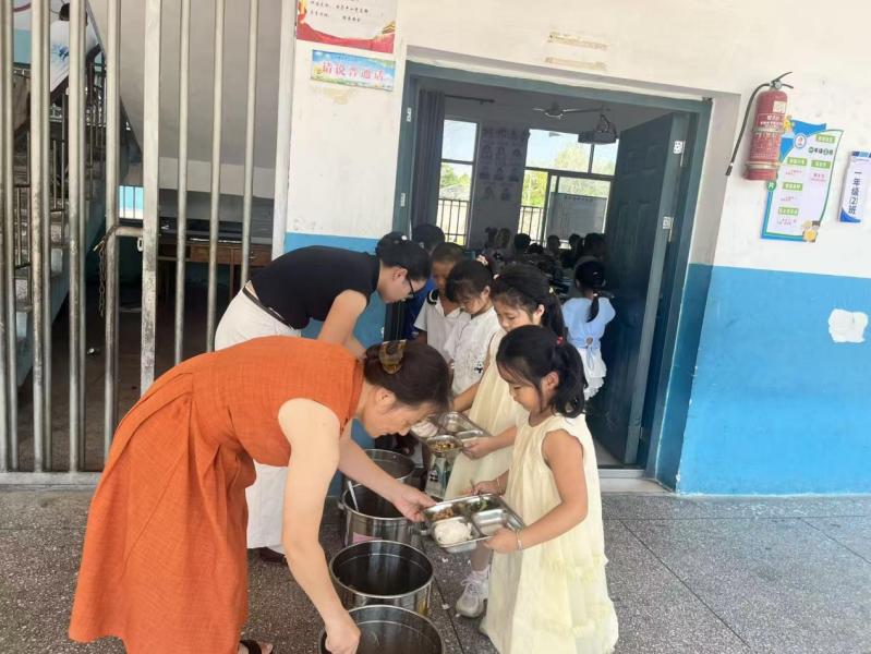 每天午餐時(shí)段,一年級的老師們都會提前到崗分工,輪流值守打飯窗口,化身孩子們的“用餐引導(dǎo)員”。遇到挑食的孩子,老師會蹲下身耐心講解“每種蔬菜都有不一樣的營養(yǎng)魔法”,鼓勵(lì)他們大膽嘗試;用餐過程中,老師們穿梭在餐桌之間,輕聲提醒“腰背挺直吃飯香”“慢慢嚼助消化”,及時(shí)幫孩子擦拭灑落的飯粒,引導(dǎo)大家踐行“光盤行動”;餐后,還會手把手教孩子們將餐盤、餐具分類擺放,培養(yǎng)“自己的事情自己做”的勞動意識。