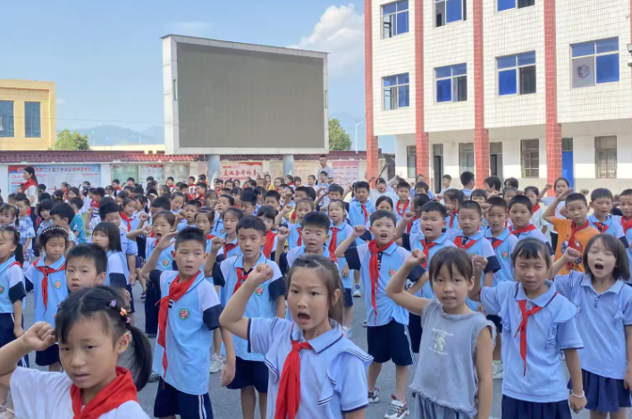 宣誓環(huán)節(jié)中,優(yōu)秀少先隊(duì)員代表領(lǐng)誓,新隊(duì)員右手握拳高舉,莊嚴(yán)承諾,稚嫩而堅(jiān)定的誓言響徹校園,彰顯新時(shí)代少年的責(zé)任擔(dān)當(dāng)。輔導(dǎo)員隨后帶領(lǐng)呼號,隊(duì)員們齊聲回應(yīng),將現(xiàn)場氣氛推向高潮。儀式尾聲,隊(duì)旗在出旗曲中退場,全體敬禮目送。