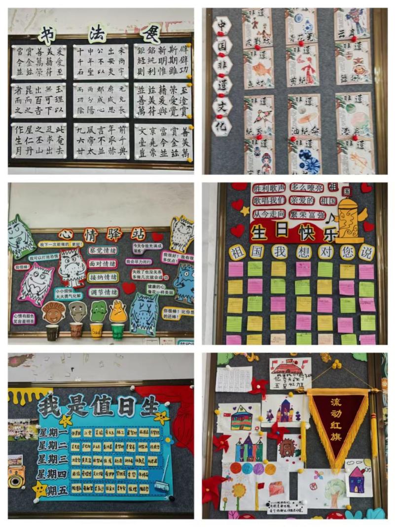 各班班主任根據(jù)孩子的年齡特點(diǎn),巧妙構(gòu)思,精心布置,教室后面一幅幅黑板報(bào)既美觀又創(chuàng)新,內(nèi)容栩栩如生,把無(wú)聲的教育變成有聲的教育,為班級(jí)文化增添了濃厚的一筆。