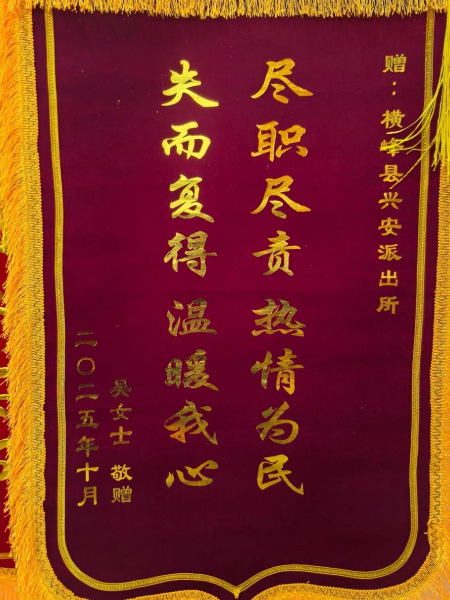 近日,上饒市橫峰縣公安局接連收到群眾送來的三面錦旗,鮮紅錦旗上的鎏金大字,既是群眾的真摯謝意,更是公安民輔警踐行“人民公安為人民”初心的生動注腳。