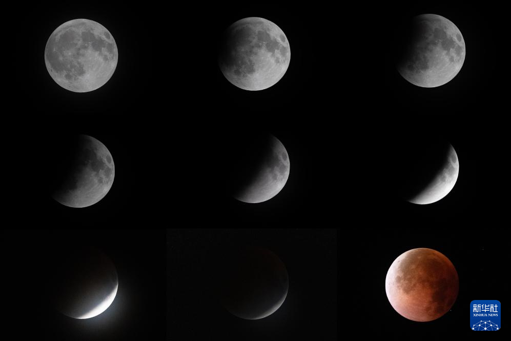 這是月全食過程(拼版照片,9月7日至8日攝)。