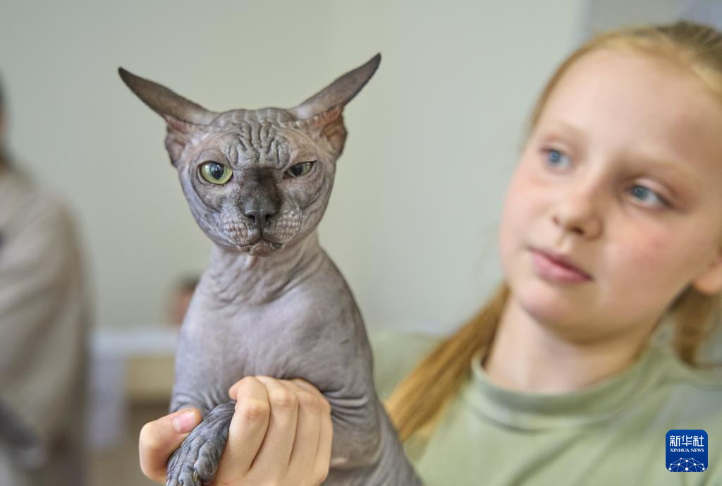 9月21日,一名女孩展示她的斯芬克斯貓。