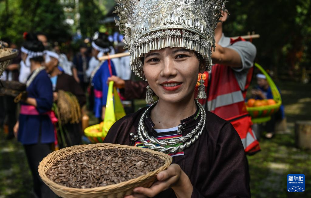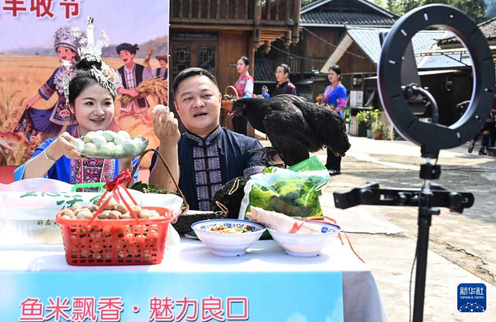10月17日,廣西三江侗族自治縣5個(gè)鄉(xiāng)鎮(zhèn)的群眾聚集在良口鄉(xiāng)產(chǎn)口村,開展形式多樣的慶豐收活動。