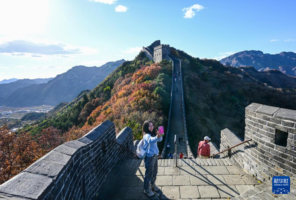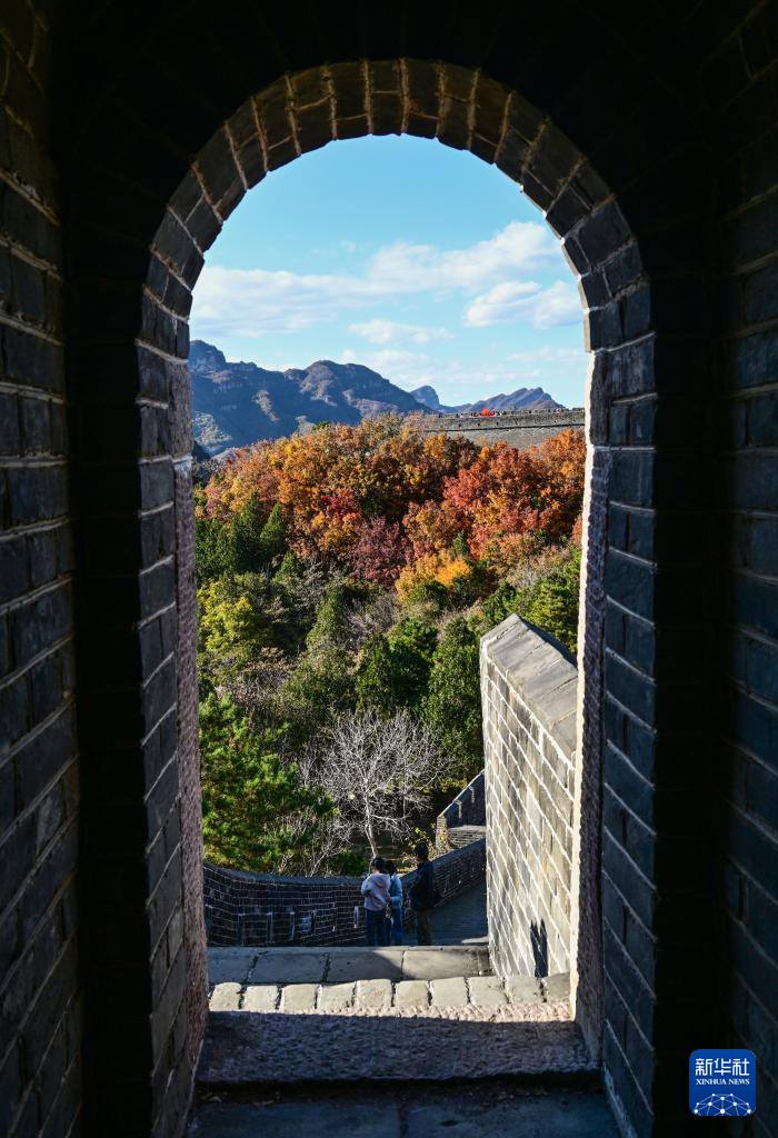 晚秋時節,位于天津市薊州區的黃崖關長城,山巒間的彩葉層層疊疊、絢爛繽紛,將濃烈的秋意潑灑在長城內外。